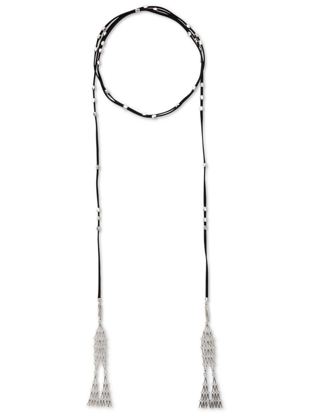 Kachina scarf Highlights - Black - Suede - Adjustable-length cord - Bead embellishment - Metal tassel detail Imported Composition Brass 50%, Lambskin 40%, Tin 10%