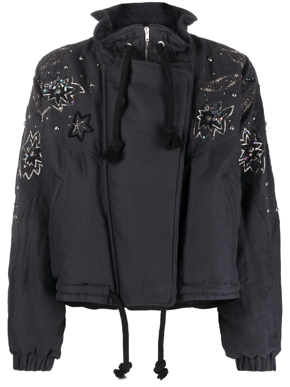 Kalassia embroidered jacket Defined by intricate embellishment throughout, the Kalassia jacket by Isabel Marant is embroidered with delicate bead and sequin detailing. Crafted in a blend of cotton and linen, the oversized design showcases the brand's laid-back style. Imported Composition Outer: glass 100%, Acrylic 100%, Polyester 100%, Brass 100%, Cotton 64%, Linen/Flax 36% Lining: Viscose 51%, Cotton 49% SIZE & FIT Model measurements Height 5 ft 10 in(1.78 m) Bust/Chest 32.28 in(82 cm) Hips 35.03 in(89 cm) Waist 23.22 in(59 cm) FittingInformation This piece fits true to size. We recommend you get your regular size Cut for a loose fit Made with a mid-weight non-stretch fabric
