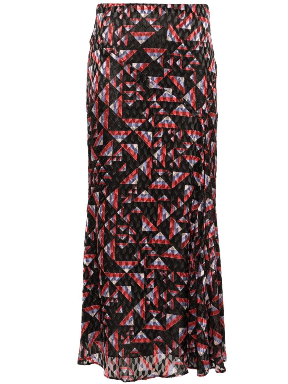 Katae geometric-print midi skirt Highlights - Black/multicolour - Geometric-pattern print - Flared hem - Mid-length - Full lining - Concealed side zip fastening Imported Composition Outer: Viscose 52%, Silk 48% Lining: Silk 100% SIZE & FIT Model measurements Height 5 ft 11 in(1.8 m) Bust/Chest 31.49 in(80 cm) Hips 36.61 in(93 cm) Waist 24.4 in(62 cm) FittingInformation This midi-length skirt is intended to be worn high on the waist Made from a lightweight non-stretch fabric This piece fits true to size – take your usual size