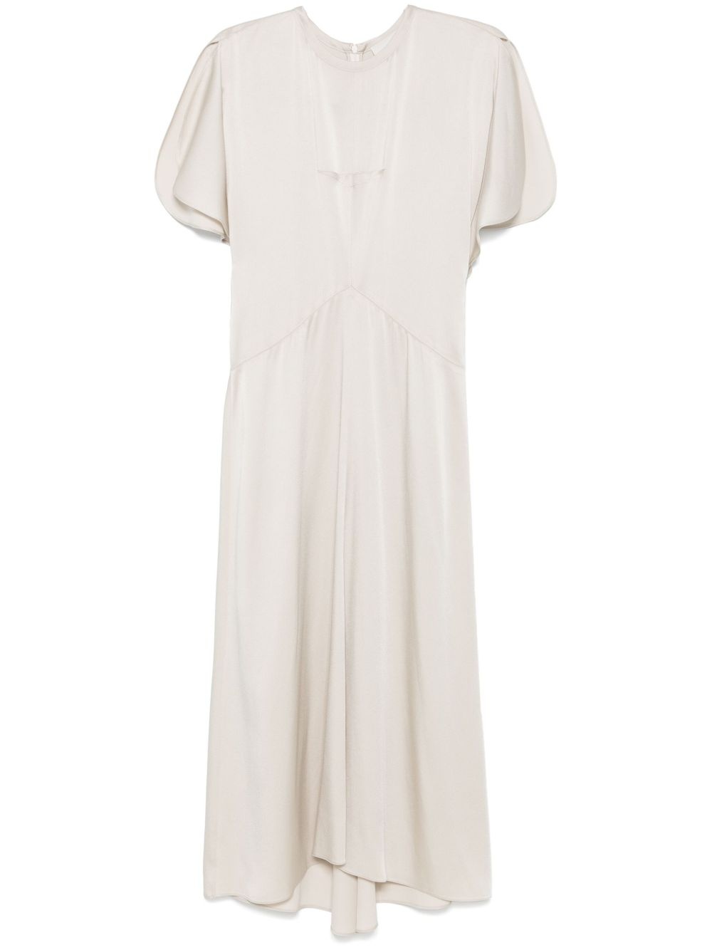 Keany midi dress Highlights - Light beige - Concealed side zip fastening - Round neck - Flutter sleeves - High-low hem Imported Composition Viscose 54%, Acetate 46% SIZE & FIT Model measurements Height 5 ft 10 in(1.77 m) Bust/Chest 29.92 in(76 cm) Hips 34.25 in(87 cm) Waist 23.62 in(60 cm) FittingInformation Designed for a slim fit that sits just away from the body offering a close yet comfortable fit Made from a midweight non-stretch fabric Washing instructions Dry Clean Only