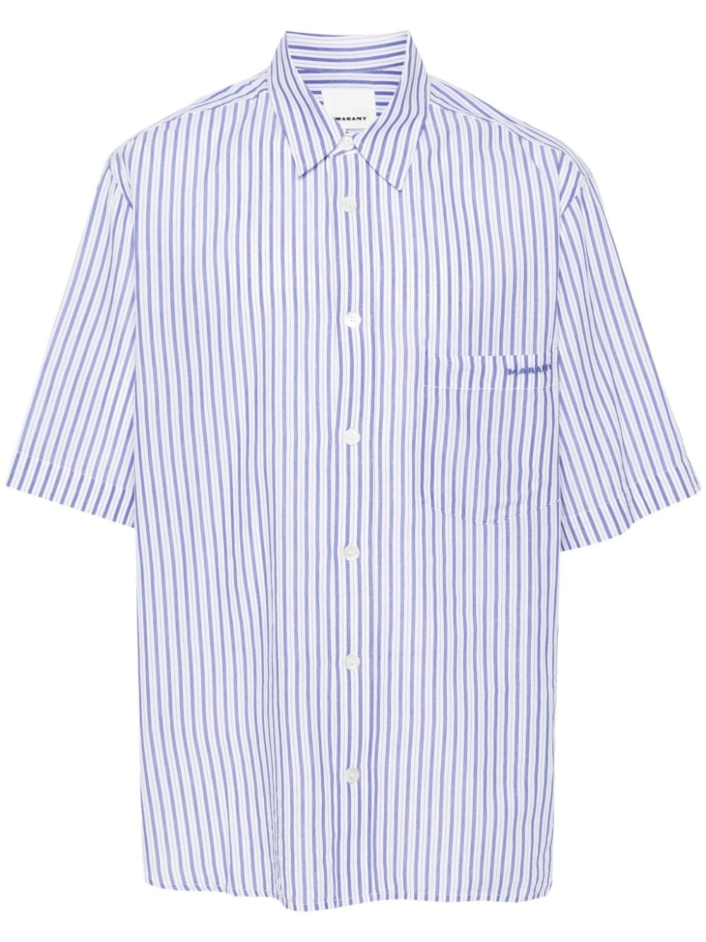 Labilio striped cotton shirt Highlights - White - Blue - Cotton - Vertical stripe print - Pointed flat collar - Short sleeves - Chest patch pocket - Embroidered logo at the chest - Short side slits - Curved hem - Front button fastening Made in Italy Composition Polyester 100%, Cotton 100% SIZE & FIT Model measurements Height 6 ft 2 in(1.87 m) Bust/Chest 36.22 in(92 cm) Hips 37 in(94 cm) Waist 27.95 in(71 cm) FittingInformation Designed for an oversized fit, offering additional room throughout Made from a midweight non-stretch fabric This piece fits true to size – take your usual size Washing instructions Machine Wash