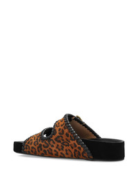 Lennyo leather-trimmed leopard-print suede slides Leopard print