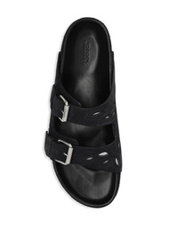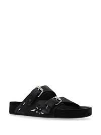 Lennyo suede sandals Highlights - Black - Calf suede - Cut-out detailing - Decorative stitching - Double-strap design - Round open toe - Moulded footbed - Flat rubber sole - Silver-tone hardware Imported Composition Leather 100%
