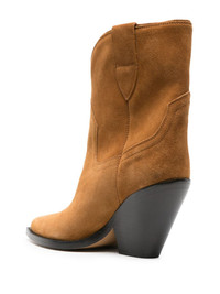 Leyane 90mm suede boots Western styles inform ISABEL MARANT's designs, as demonstrated by these cognac-brown Leyane boots. They are crafted in Italy from panels of supple calf suede to a pointed-toe silhouette grounded on a towering, sharply slanted Cuban heel. Highlights - Cognac brown - Calf suede - Panelled design - Decorative stitching - Double pull-tab at the opening - Pointed toe - Pull-on style - Branded leather insole - 90mm cuban heel - Leather sole Made in Italy Composition Suede 100% SIZE & FIT Measurement HEEL 3.54 in(9 cm) CIRCUMFERENCE 11.81 in(30 cm) Sole height 0.39 in(1 cm) HEIGHT 6.69 in(17 cm)
