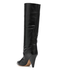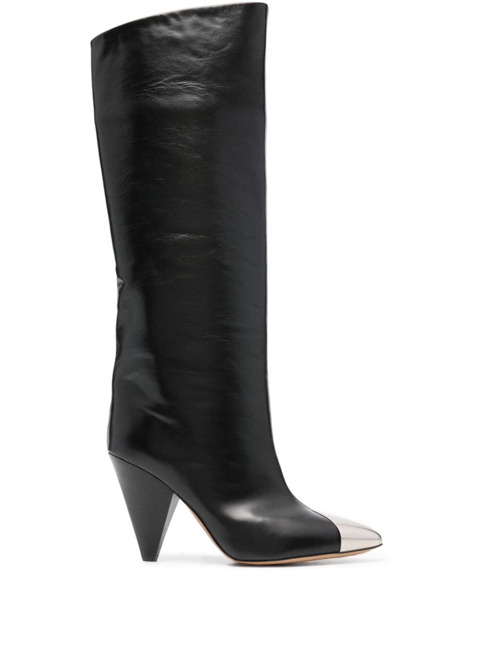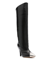 Lilezio 95mm leather knee-high boots Defined by their metal toe cap, these Lilezio knee-high boots showcase Isabel Marant's effortless elegance. They are crafted from black leather and offset by pointed toes. Highlights - Black - Calf leather - Smooth grain - Tonal stitching - Metal toecap - Pointed toe - Pull-on style - Branded leather insole - 95mm cone heel - Leather sole Made in Italy Composition Outer: Calf Leather 100% Lining: Calf Leather 100% Sole: Calf Leather 100% SIZE & FIT Measurement CIRCUMFERENCE 14.56 in(37 cm) HEEL 3.74 in(9.5 cm) HEIGHT 13.38 in(34 cm) Sole height 0.39 in(1 cm)
