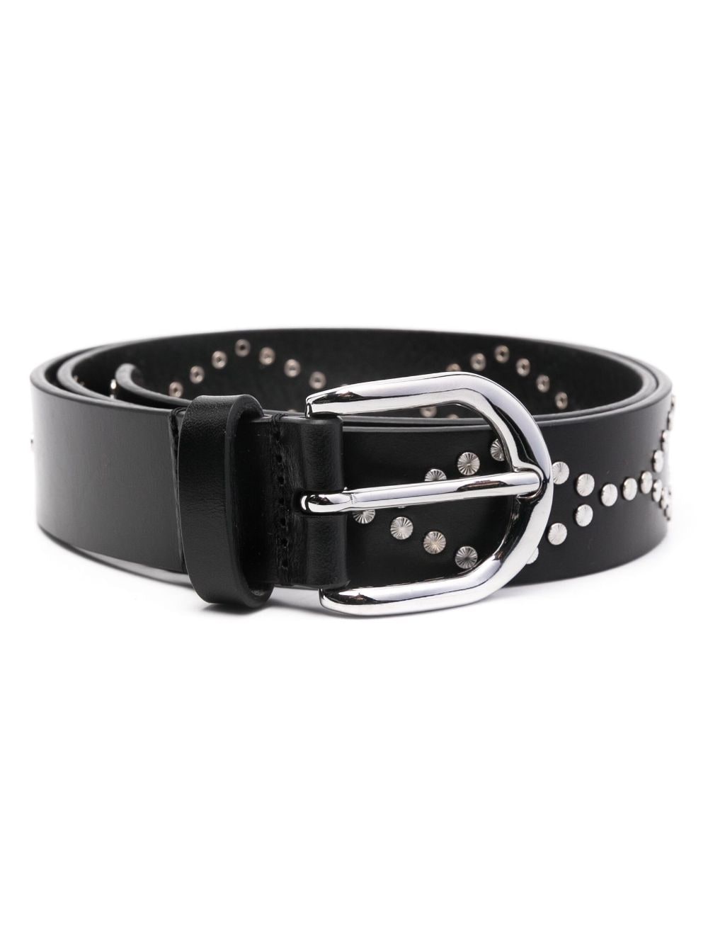 Liliana leather belt Highlights - Black - Leather - Smooth grain - Stud detailing - Buckle fastening - Punched holes Made in Italy Composition Leather 70%, Copper 25%, Zamak 5% SIZE & FIT Measurement Maximum Length 31.88 in(81 cm) Minimum Length 27.95 in(71 cm) TOTAL LENGTH 35.82 in(91 cm) WIDTH 1.18 in(3 cm)