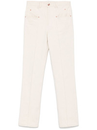 Lirokae trousers Highlights - Light beige - Concealed fly and button fastening - Belt loops - Two rounded pockets to the sides - Two rear patch pockets Imported Composition Fabric 100% SIZE & FIT Model measurements Height 5 ft 10 in(1.79 m) Bust/Chest 31.88 in(81 cm) Hips 35.43 in(90 cm) Waist 23.62 in(60 cm) FittingInformation Designed for a straight-leg fit, these trousers allow for a close fit at the waist and an unrestricted, comfortable fit over the leg