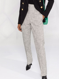 Lirokia high-waisted tailored trousers With a cotton construction in ivory and black hues, these Lirokia high-waisted tailored trousers from Isabel Marant are a sophisticated choice. Imported Composition Outer: Cotton 63%, Polyester 37% Lining: Cotton 100% SIZE & FIT Model measurements Height 5 ft 11 in(1.8 m) Bust/Chest 31.49 in(80 cm) Hips 35.82 in(91 cm) Waist 24.8 in(63 cm) FittingInformation This piece fits true to size. We recommend you get your regular size Designed to be fitted at the waist and hips, loose over the leg Made with a mid-weight non-stretch fabric Washing instructions Dry Clean Only