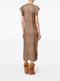 LYNDSAY ruffled midi dress Highlights - Brown - Floral print - V-neck - Short sleeves - Front ruching - Rear zip fastening Imported Composition Viscose 65%, Silk 35% Washing instructions Read Manufacturer Guidelines