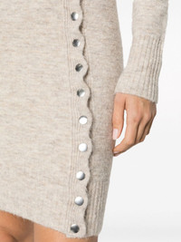 Marina knitted dress Showcasing ISABEL MARANT's focus on detail, the beige Marina dress is accented with silver-tone buttons along one sleeve and side. Reminiscent of knitwear, it's crafted from stretch-infused wool with a foldover neck and wide ribbed trims. Highlights - Light beige - Wool blend - Ribbed detailing - Knitted construction - Side button fastening - High neck - Long sleeves - Straight hem Made in Italy Composition Polyamide 42%, Acrylic 24%, Alpaca Wool 23%, Wool 9%, Spandex/Elastane 2% SIZE & FIT Model measurements Height 5 ft 10 in(1.79 m) Bust/Chest 33.07 in(84 cm) Hips 35.82 in(91 cm) Waist 24.01 in(61 cm) Measurement SLEEVE LENGTH 19.68 in(50 cm) HIPS 31.49 in(80 cm) WAIST 29.92 in(76 cm) BUST 32.28 in(82 cm) FittingInformation Designed for a slim fit that sits just away from the body offering a close yet comfortable fit Made with a midweight knit, this piece offers some stretch This piece fits true to size – take your usual size Washing instructions Hand Wash