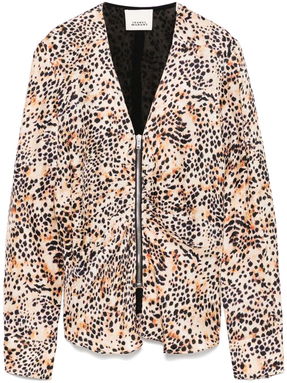 Marjorie blouse Highlights - Light beige - Front zip fastening - Buttoned cuffs - Animal print - V-neck Imported Composition Outer: Viscose 70%, Silk 30% Lining: Viscose 100% SIZE & FIT Model measurements Height 5 ft 10 in(1.78 m) Bust/Chest 33.85 in(86 cm) Hips 36.61 in(93 cm) Waist 26.77 in(68 cm) FittingInformation Designed for a slim fit that sits just away from the body offering a close yet comfortable fit Made from a midweight non-stretch fabric