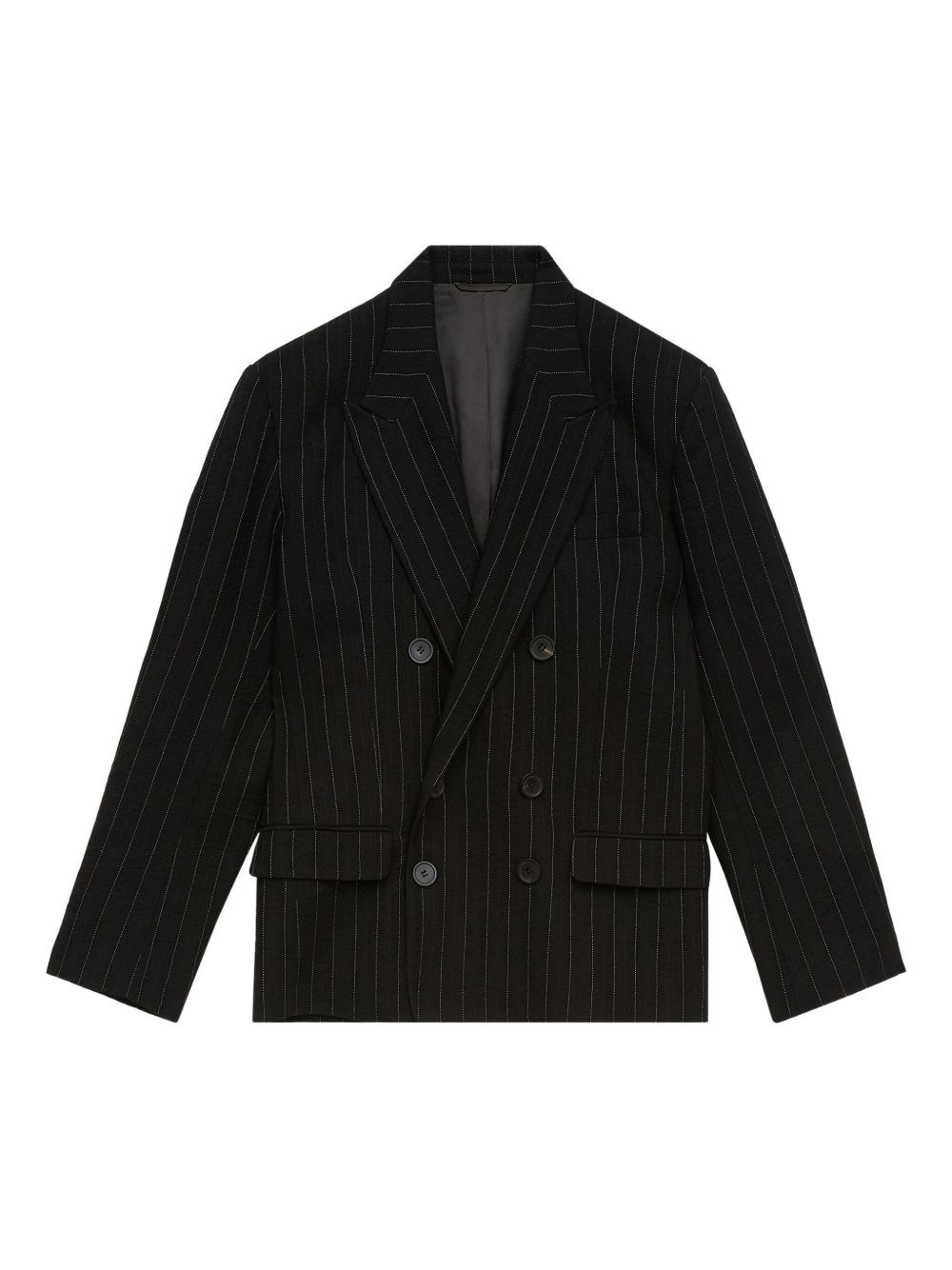 Meddie jacket Highlights - Black - Pinstripe pattern - Double-breasted - Button fastening - Notched lapels - Flap pockets Imported Composition Cotton 68%, Virgin Wool 30%, Viscose 2% Washing instructions Read Manufacturer Guidelines