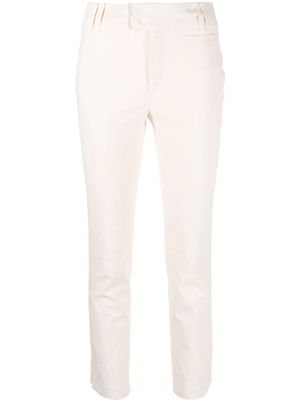 mid-rise straight trousers neutral cotton blend mid-rise belt loops concealed front button fastening front welt pocket Imported Composition Outer: Cotton 70%, Viscose 29%, Elastane 1% Lining: Cotton 100% SIZE & FIT Model measurements Height 5 ft 10 in(1.79 m) Bust/Chest 31.49 in(80 cm) Hips 35.03 in(89 cm) Waist 24.4 in(62 cm) FittingInformation This piece fits true to size. We recommend you get your regular size Cut for a slim fit Made with a mid-weight stretch fabric Washing instructions Dry Clean Only