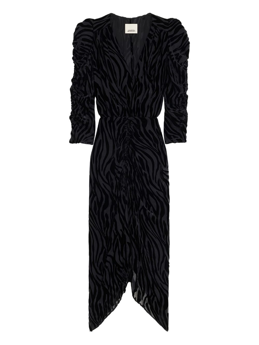Nemil zebra-print puff-sleeve dress Highlights - Black - Zebra print - Puff sleeves - V-neck - Belted waist - Asymmetrical hem Imported Composition Viscose 64%, Silk 36% Washing instructions Read Manufacturer Guidelines
