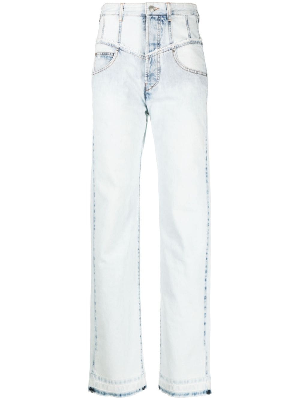 Noemie high-rise straight-leg jeans Highlights - Light blue - Cotton - Denim - Bleach wash - Frayed brim - Logo patch to the rear - High-waisted - Belt loops - Front button fastening - Classic five pockets - Straight leg Made in Italy Composition Cotton 100% Lining: Polyester 65%, Cotton 35% SIZE & FIT Model measurements Height 5 ft 10 in(1.79 m) Bust/Chest 31.49 in(80 cm) Hips 35.03 in(89 cm) Waist 23.62 in(60 cm) FittingInformation Designed for a straight-leg fit, these jeans allow for a close fit at the waist and an unrestricted and comfortable fit over the leg Sturdy and hard-wearing, this denim piece offers no stretch This piece fits true to size – take your usual size Washing instructions Machine Wash