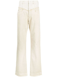 Noemie straight-leg jeans Reflective of Isabel Marant's unique take on garments, the Noemie jeans are made from two shades of cotton denim that lend them a panelled effect. Sitting high at the waist, the pair falls to a relaxed silhouette with frayed accents. Highlights - Ecru - Light beige - Cotton - High-waisted - Concealed fly and button fastening - Belt loops - Classic five pockets - Frayed detailing - Straight leg Imported Composition Cotton 100% SIZE & FIT Model measurements Height 5 ft 11 in(1.8 m) Bust/Chest 34.25 in(87 cm) Hips 35.82 in(91 cm) Waist 24.8 in(63 cm) Measurement INSIDE LEG 32.67 in(83 cm) FRONT RISE 13.77 in(35 cm) HIPS 38.58 in(98 cm) FittingInformation Designed for a straight-leg fit, these jeans allow for a close fit at the waist and an unrestricted and comfortable fit over the leg Sturdy and hard-wearing, this denim piece offers no stretch This piece fits true to size – take your usual size Washing instructions Machine Wash