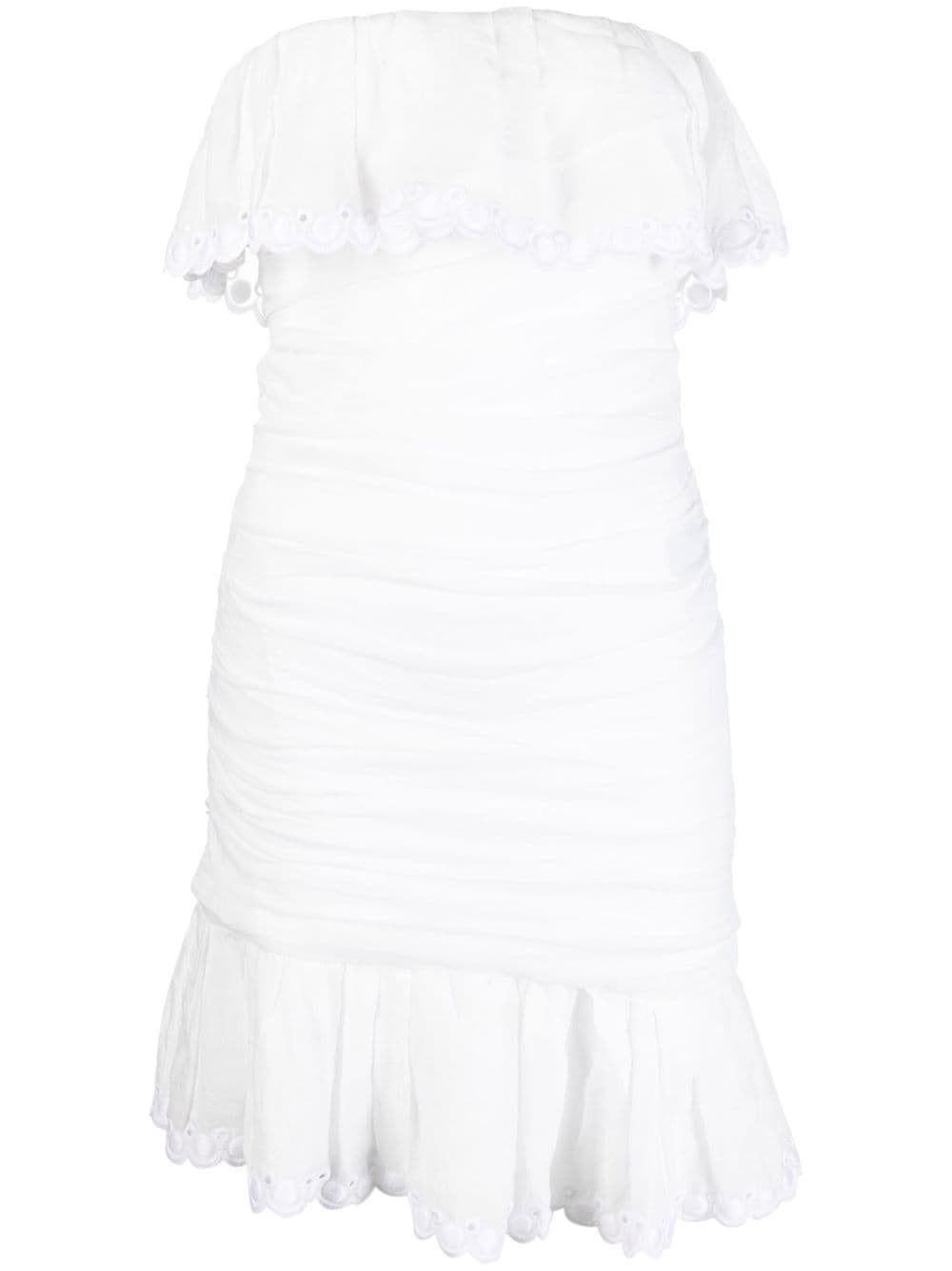 Oxani off-shoulder mini dress All-over ruching, soft ruffles and embroidered trims elevate the simple shape of this Isabel Marant minidress. It's cut from cotton to a fitted shape with an off-shoulder neckline that recalls the flared hem. Highlights - White - Cotton - Ramie - Ruched detailing - Off-shoulder - Scallop hem - Thigh-length Made in Italy Composition Lining: Cotton 100% Outer: Ramie 100% SIZE & FIT Model measurements Height 5 ft 10 in(1.79 m) Bust/Chest 31.1 in(79 cm) Hips 35.03 in(89 cm) Waist 24.01 in(61 cm) Washing instructions Hand Wash