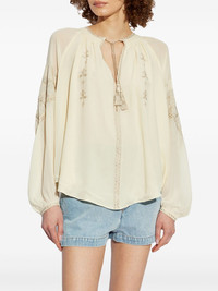 Oris blouse Highlights - Ecru - Front tie fastening - Buttoned cuffs - Embroidered design - Long raglan sleeves Made in Italy Composition Silk 100%