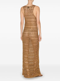 Pernille maxi dress Highlights - Golden brown - Short front button fastening - Round neck - Sleeveless - Crochet knit Imported Composition Viscose 83%, Metallized Polyester 17%