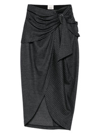pinstripe belted wrap skirt Highlights - Grey - Pinstripe pattern - Asymmetric design - Belted detail - Zip fastening Imported Composition Virgin Wool 86%, Cotton 14% SIZE & FIT Model measurements Height 5 ft 9 in(1.75 m) Bust/Chest 34.64 in(88 cm) Hips 36.61 in(93 cm) Waist 26.37 in(67 cm) Washing instructions Read Manufacturer Guidelines