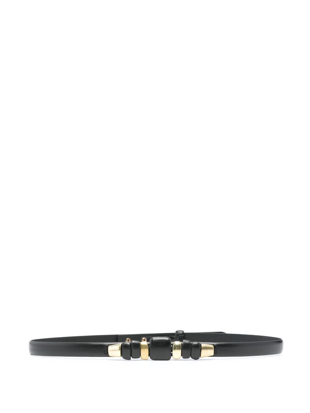Raissa belt Highlights - Black - Press-seal fastening - Bead detailing - Punched holes - Adjustable fit Made in Italy Composition Calf Leather 70%, Resin 15%, Brass 15% SIZE & FIT Measurement Maximum Length 36.22 in(92 cm) Minimum Length 32.28 in(82 cm) WIDTH 0.78 in(2 cm)