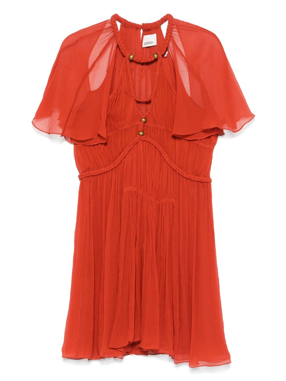 Ranadial mini dress Highlights - Burnt orange - Rear teardrop fastening - Braided strap - Bead detailing - Plunging v-neck Imported Composition Lining: Silk 100% Outer: Silk 100% SIZE & FIT Model measurements Height 5 ft 10 in(1.78 m) Bust/Chest 33.46 in(85 cm) Hips 36.22 in(92 cm) Waist 23.22 in(59 cm) FittingInformation Designed for a close fit at the chest and waist with a loose fit at the hip Made from a lightweight non-stretch fabric