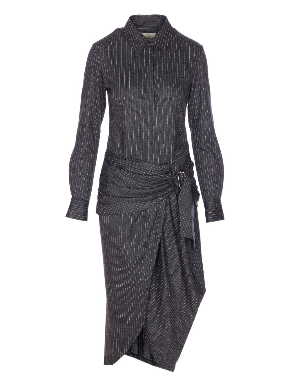 Reilly pinstripe belted dress Highlights - Charcoal grey - Pinstripe pattern - Button closure - Long sleeves - Belted waist - Asymmetrical hem Imported Composition Lining: Cotton 100% Outer: Virgin Wool 86%, Cotton 14% Washing instructions Read Manufacturer Guidelines