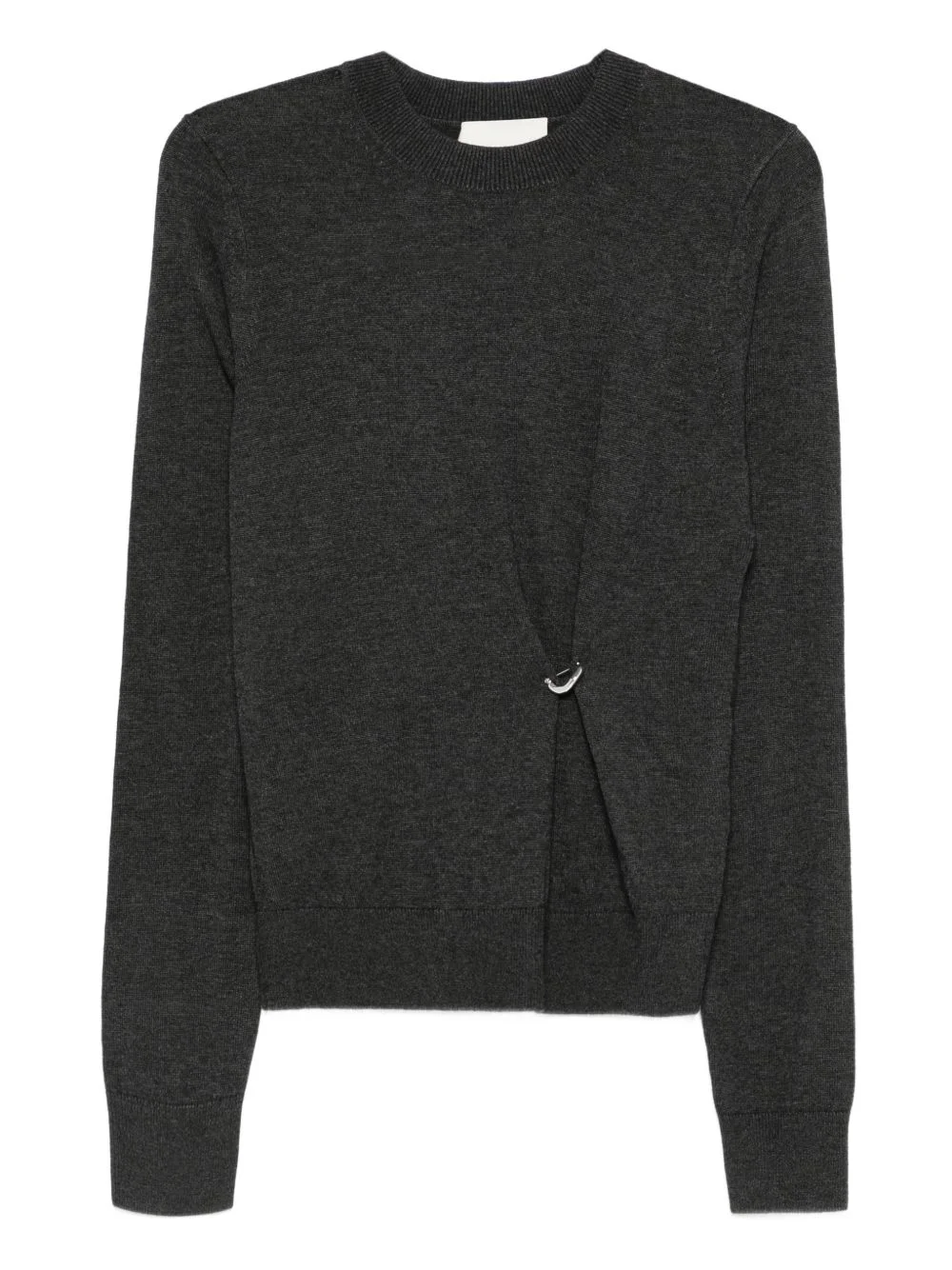ring-detail crew-neck sweater Highlights - Grey - Ring detail - Round neck - Long sleeves - Ribbed cuffs - Ribbed hem Imported Composition Viscose 70%, Wool 30% SIZE & FIT Model measurements Height 5 ft 10 in(1.78 m) Bust/Chest 33.46 in(85 cm) Hips 36.22 in(92 cm) Waist 23.22 in(59 cm) Washing instructions Hand Wash
