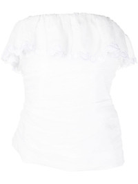 Orma off-shoulder top Highlights - White - Cotton - Ruffled detailing - Eyelet detailing - Ruched detailing - Strapless - Asymmetric hem Imported Composition Lining: Cotton 100% Outer: Ramie 100% SIZE & FIT Model measurements Height 5 ft 11 in(1.8 m) Bust/Chest 31.49 in(80 cm) Hips 36.61 in(93 cm) Waist 24.4 in(62 cm) Measurement LENGTH 16.53 in(42 cm) WAIST 29.13 in(74 cm) FittingInformation This piece fits true to size. We recommend you get your regular size Cut for a close fit Made with a mid-weight non-stretch fabric Washing instructions Hand Wash