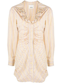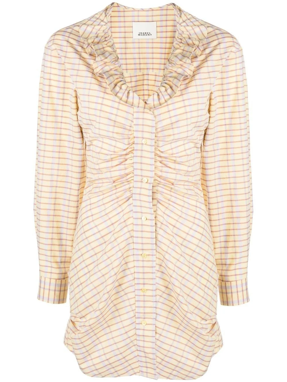 Coral shirt dress The fluid silk construction of this Isabel Marant shirt dress allows for the ruffled collar to stand out and create a voluminous silhouette. The playful light yellow colourway and plaid check print lend a lively finish to the piece. Highlights - Light yellow - Silk-cotton blend - Plaid check print - Front button fastening - Ruffle collar - Long sleeves - Thigh-length Imported Composition Silk 54%, Cotton 46% SIZE & FIT Model measurements Height 5 ft 10 in(1.78 m) Bust/Chest 31.49 in(80 cm) Hips 35.03 in(89 cm) Waist 23.62 in(60 cm) Measurement HIPS 38.58 in(98 cm) LENGTH 35.03 in(89 cm) WAIST 29.92 in(76 cm) FittingInformation This piece fits true to size. We recommend you get your regular size Cut for a slim fit Made with a mid-weight non-stretch fabric Washing instructions Dry Clean Only
