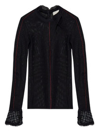 Sarah lace-trim top Highlights - Black - Lace trim - Long sleeves - Button fastening at the rear - Seam detailing - High neck Imported Composition Outer: Polyester 78%, Viscose 20%, Spandex/Elastane 2% Washing instructions Read Manufacturer Guidelines