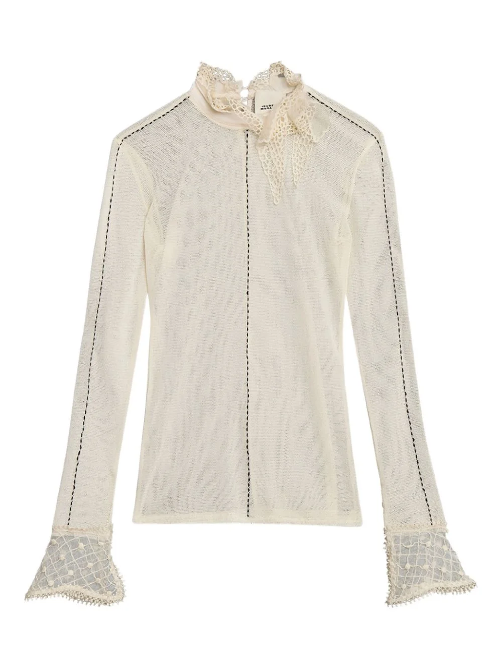 Sarah lace-trimmed mesh top Highlights - Off-white - Lace trim - Long sleeves - Central seam detail Imported Composition Polyester 78%, Rayon 20%, Elastane 2% Washing instructions Read Manufacturer Guidelines