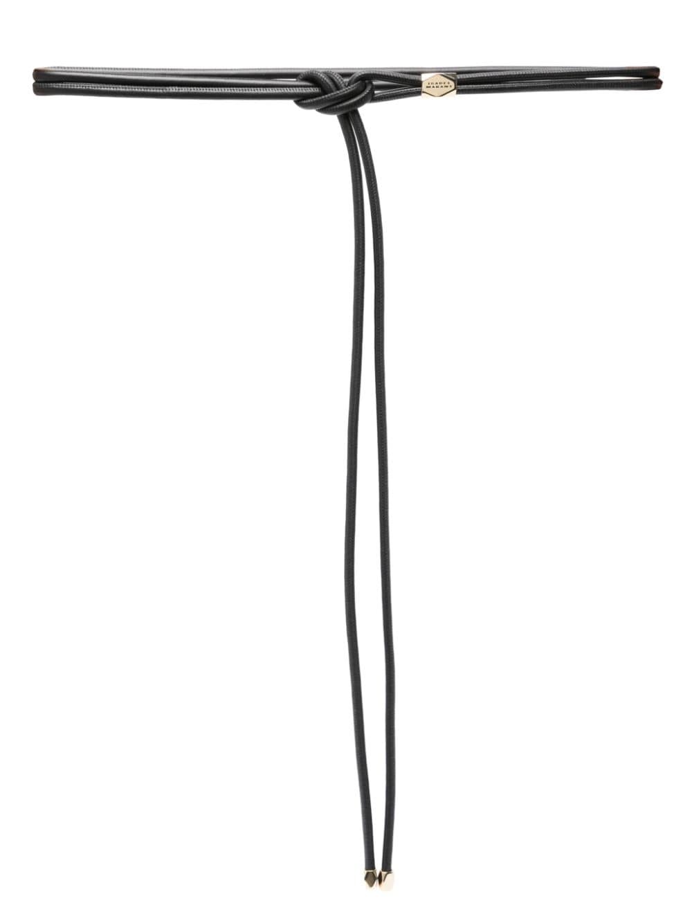 Silvia leather belt Highlights - Black/gold-tone - Leather - Brass - Smooth grain - Gold-tone logo plaque - Self-tie fastening - Adjustable fit - This piece comes complete with a protective dust bag. Imported Composition Lambskin 80%, Brass 20% SIZE & FIT Measurement TOTAL LENGTH 55.11 in(140 cm) WIDTH 0.59 in(1.5 cm)