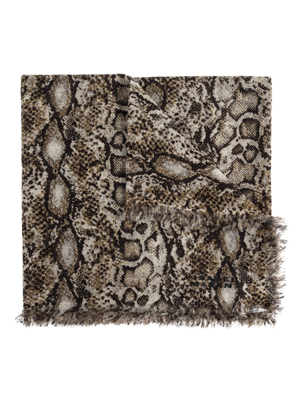 snakeskin-print fringed scarf Highlights - Black - Snakeskin print - Fringed edges - Wool-cashmere blend Imported Composition Cashmere 50%, Wool 50% SIZE & FIT Measurement LENGTH 47.24 in(120 cm) WIDTH 47.24 in(120 cm) Washing instructions Read Manufacturer Guidelines