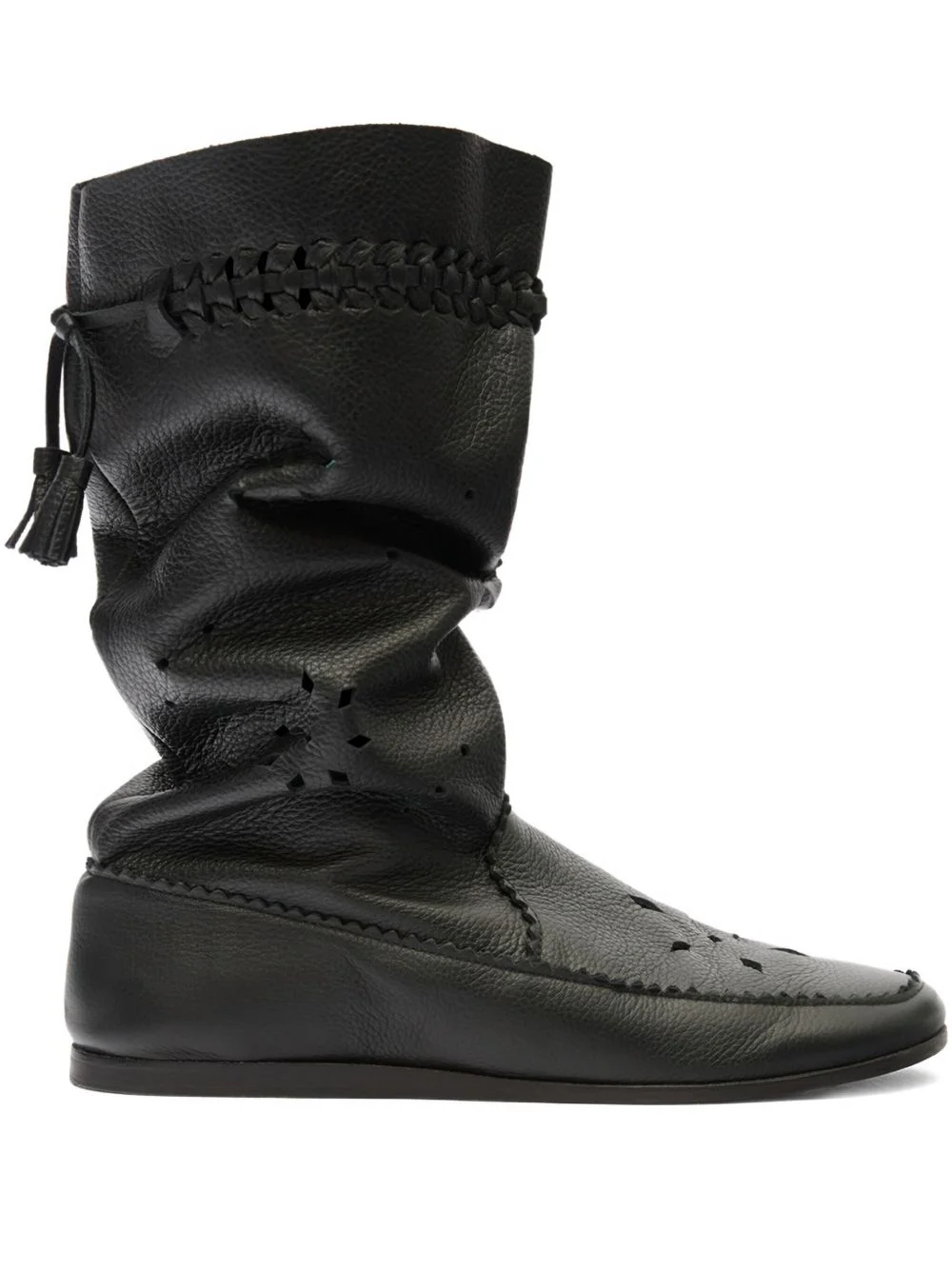 tassel braided leather boots Highlights - Black - Leather - Braided detail - Tassel detail - Perforated detail Imported Composition Outer: Leather 100% Lining: Leather 100% Sole: Leather 100%