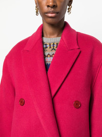 Theodore double-breasted coat Isabel Marant presents a wardrobe staple in this raspberry pink-hued coat achieved through the traditional double-breasted silhouette and wool-blend composition. Highlights - Raspberry pink - Virgin wool blend - Notched lapels - Double-breasted button fastening - Long sleeves - Buttoned cuffs - Two front jetted pockets - Rear slit - Mid-calf length - Straight hem Imported Composition Outer: Virgin Wool 83%, Cashmere 15%, Polyamide 2% Lining: Viscose 100% SIZE & FIT Model measurements Height 5 ft 10 in(1.77 m) Bust/Chest 29.92 in(76 cm) Hips 34.25 in(87 cm) Waist 23.62 in(60 cm) FittingInformation Designed to be unstructured, offering a loose fit throughout The vented hem offers movement at the rear Made from a midweight non-stretch fabric This piece fits true to size – take your usual size Measurement BUST 44.01 in(111.8 cm) LENGTH 45 in(114.3 cm) WAIST 45 in(114.3 cm) SLEEVE LENGTH 22.99 in(58.4 cm) Washing instructions Dry Clean Only