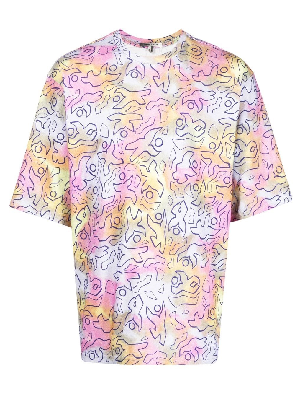 tie-dye cotton T-shirt tie-dye cotton T-shirt from ISABEL MARANT featuring multicolour, cotton, tie-dye pattern, abstract pattern print, round neck, short sleeves and straight hem. Imported Composition Cotton 100% SIZE & FIT Model measurements Height 6 ft 1 in(1.86 m) Bust/Chest 34.64 in(88 cm) Hips 36.22 in(92 cm) Waist 27.16 in(69 cm) FittingInformation This piece fits true to size. We recommend you get your regular size Cut for an oversized fit Made with a mid-weight fabric