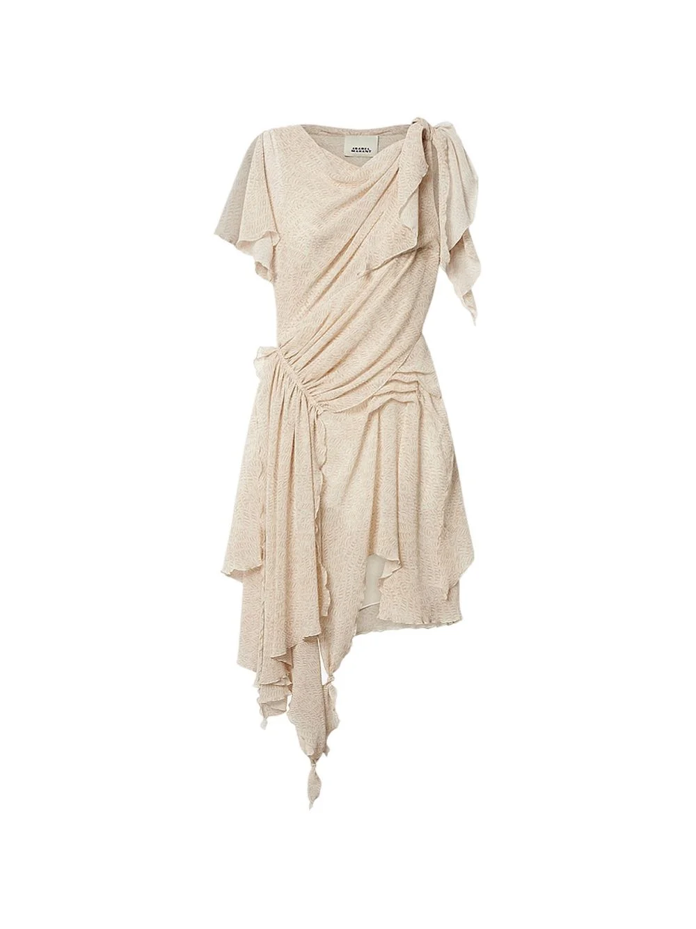 Trysha ruffled mini dress Highlights - Beige - Draped details - Boat neck - Ruffled detail - Zip fastening Imported Composition Silk 100% Washing instructions Read Manufacturer Guidelines