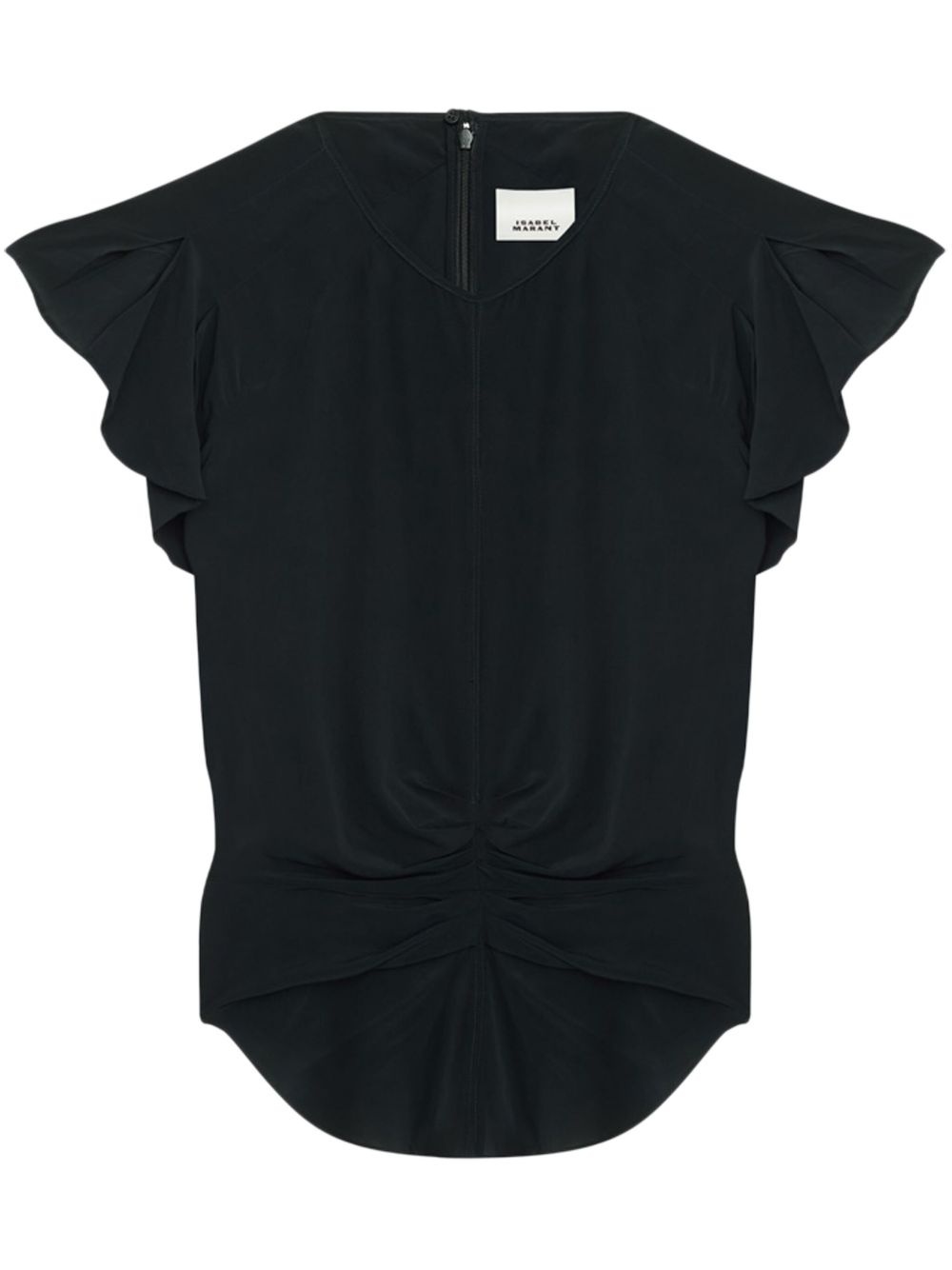 Tullya top Highlights - Black - Rear zip fastening - Round neck - Cap sleeves - Gathered detailing - Rear curved hem Imported Composition Viscose 100% Washing instructions Read Manufacturer Guidelines