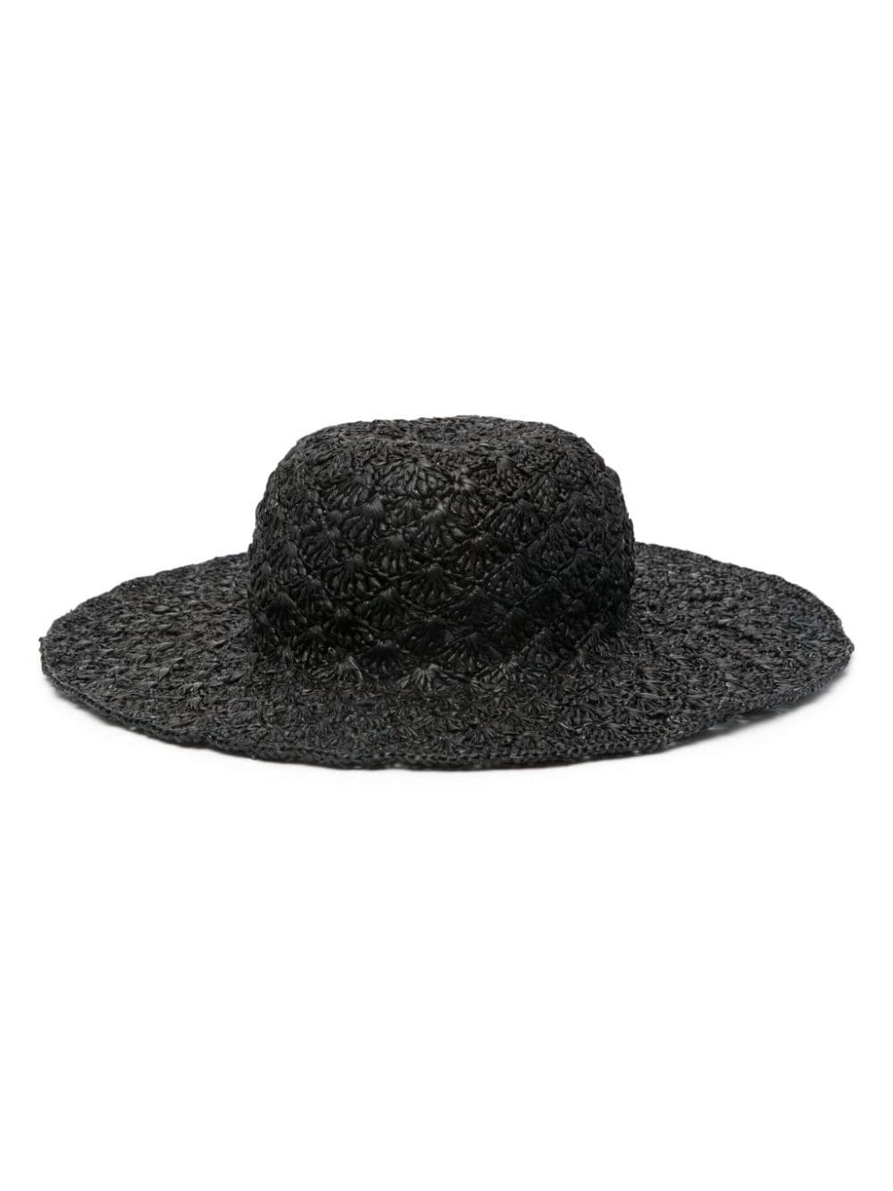Tulum woven raffia sun hat Highlights - Black - Woven raffia design - Round crown - Wide brim - Pull-on style Imported Composition Raffia 100% SIZE & FIT Measurement BRIM 3.74 in(9.5 cm) CIRCUMFERENCE 22.04 in(56 cm)
