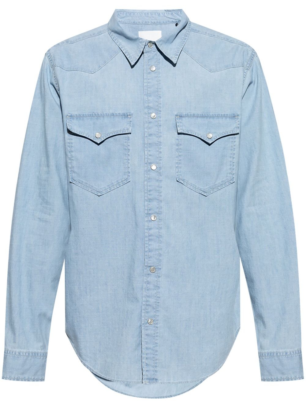 Vasco shirt Highlights - Light blue - Front press-stud fastening - Two chest flap pockets - Press-stud fastening cuffs - Curved hem Imported Composition Cotton 100% SIZE & FIT FittingInformation Designed for a regular fit, allowing for a comfortably loose fit throughout the body Made from a midweight non-stretch fabric