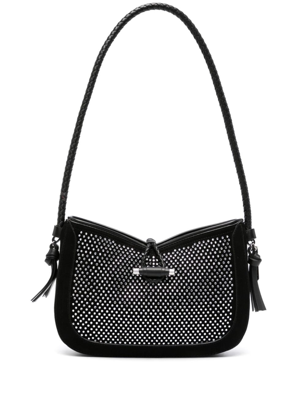 Vigo suede shoulder bag Highlights - Black - Calf suede - Single braided shoulder strap - Rhinestone embellishment - Front toggle fastening - Internal slip pocket - Silver-tone logo lettering Imported Composition Outer: Calf Suede 100% SIZE & FIT Model measurements Height 5 ft 9 in(1.76 m) Bust/Chest 33.07 in(84 cm) Hips 34.64 in(88 cm) Waist 25.59 in(65 cm) Measurement DEPTH 1.57 in(4 cm) HEIGHT 6.29 in(16 cm) STRAP 11.41 in(29 cm) WIDTH 9.44 in(24 cm)