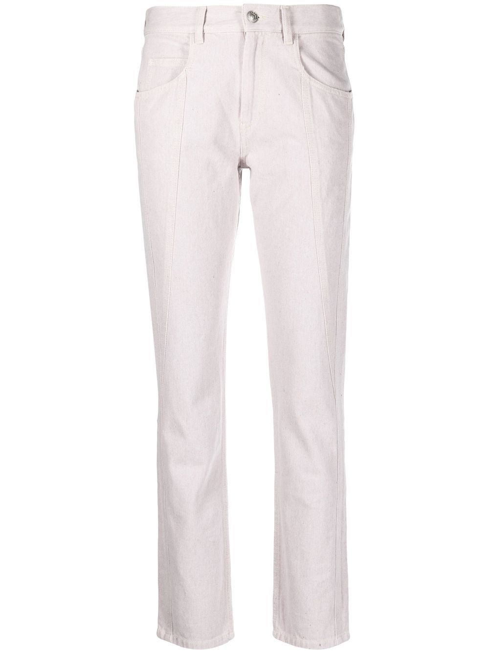 Vikira straight-leg trousers Isabel Marant's jeans have a tapered silhouette that's defined with exposed-seam detailing. They're washed in a light pink shade and are complete with the brand's logo patch at the rear. Highlights - Light pink - Stretch-cotton - Seam detailing - Mid-rise - Front button and zip fastening - Belt loops - Classic five pockets - Straight leg Imported Composition Cotton 95%, Viscose 3%, Elastane 1%, Polyester 1% SIZE & FIT Model measurements Height 5 ft 10 in(1.79 m) Bust/Chest 31.1 in(79 cm) Hips 35.03 in(89 cm) Waist 24.01 in(61 cm) FittingInformation This piece fits true to size. We recommend you get your regular size Cut for a slim fit Made with a mid-weight stretch fabric Washing instructions Machine Wash