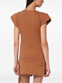 wrap-effect top Highlights - Brown - Tie fastening - Short sleeves - Boat neck - Shoulder pads Imported Composition Cotton 100%
