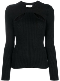 Zana cut-out ribbed top black merino wool blend ribbed knit cut-out detailing round neck long sleeves straight hem Made in Italy Composition Merino 61%, Polyester 26%, Polyamide 11%, Elastane 2% SIZE & FIT Model measurements Height 5 ft 11 in(1.8 m) Bust/Chest 31.49 in(80 cm) Hips 36.61 in(93 cm) Waist 24.4 in(62 cm) FittingInformation Designed for a slim fit that sits just away from the body offering a close yet comfortable fit Made with a midweight knit, this piece offers some stretch This piece fits true to size – take your usual size