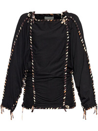 Zaolia top Highlights - Black - Drawstring fastening - Braided edge - Draped design - Slash neck Imported Composition Cotton 100%