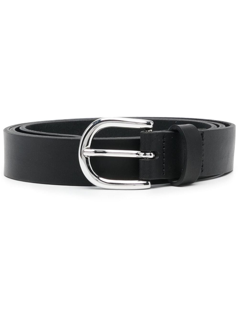 Zap leather belt black calf leather smooth grain punched holes single loop pointed tip silver-tone buckle fastening Made in France Composition Calf Leather 100% SIZE & FIT Measurement Maximum Length 37.79 in(96 cm) Minimum Length 33.85 in(86 cm) WIDTH 0.78 in(2 cm)