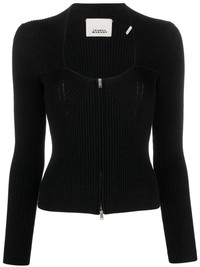 Zelie ribbed zip-up cardigan Highlights - Black - Merino wool blend - Ribbed knit - Scoop neck - Front zip fastening - Long sleeves - Straight hem Made in Italy Composition Merino 61%, Polyester 26%, Polyamide 11%, Elastane 2% Washing instructions Hand Wash