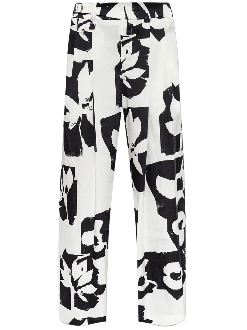 abstract-print trousers Highlights - White - Belt loops - Two side slit pockets - Wide leg Imported Composition Polyester 100%