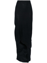 Aerate asymmetric skirt The construction of Issey Miyake's Aerate skirt is a redux of the methods used by the eponymous founder for his last show in ’98. It’s ‘created by twisting a cylinder of seamless ribbed knit into an S shape’ that wraps and drapes around the form, expanding and contracting with each step. Highlights - Midnight blue - Fine ribbed - Stretch-design - Elasticated waistband - Draped detailing - Asymmetric hem Imported Composition Polyamide 64%, Triacetate 36% SIZE & FIT Model measurements Height 5 ft 11 in(1.8 m) Bust/Chest 33.07 in(84 cm) Hips 37 in(94 cm) Waist 25.59 in(65 cm) FittingInformation Designed with an asymmetric hem, this skirt is intended to be worn just below the waist The elasticated waist allows for a comfortable fit Made with a midweight knit, this piece offers some stretch This piece fits true to size – take your usual size